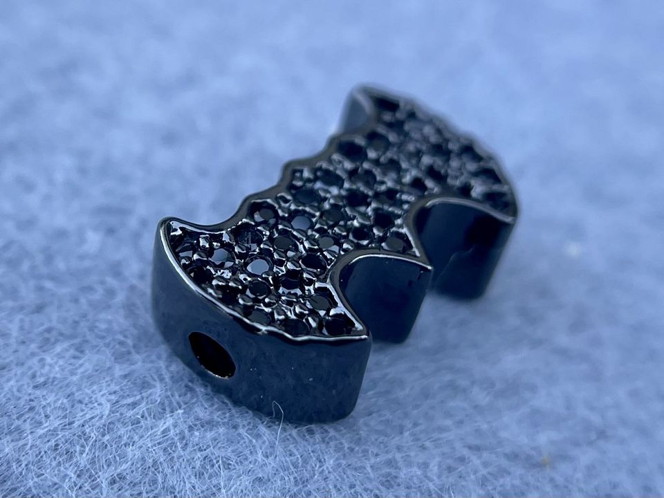 Бусина інкрустована Кубічним цирконієм (також називаються намистинами з фіанітами) Покриття родій Колір-чорний. Розмір: 8*13мм; товщина-4мм, отвір-2мм. Ціна за 1шт