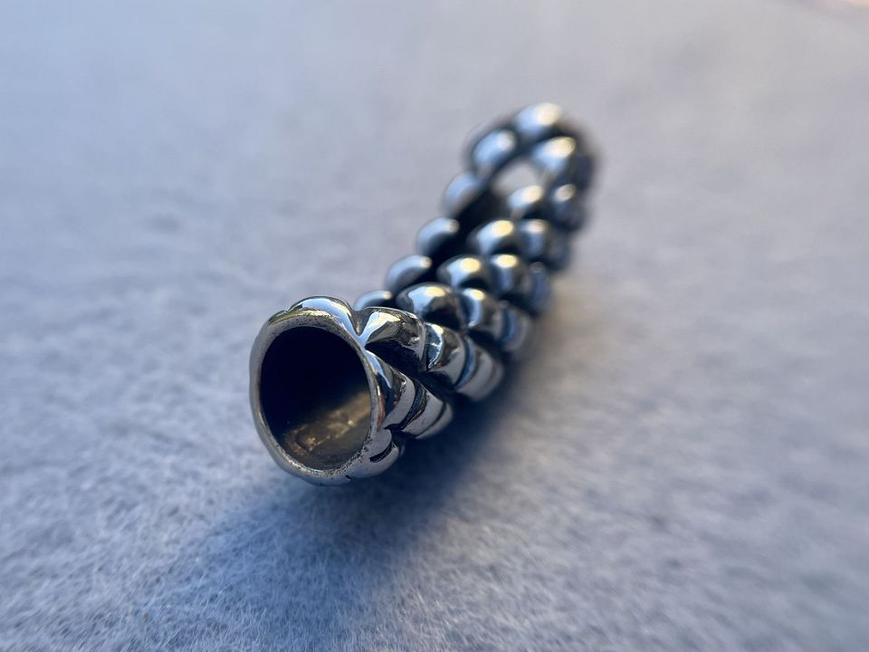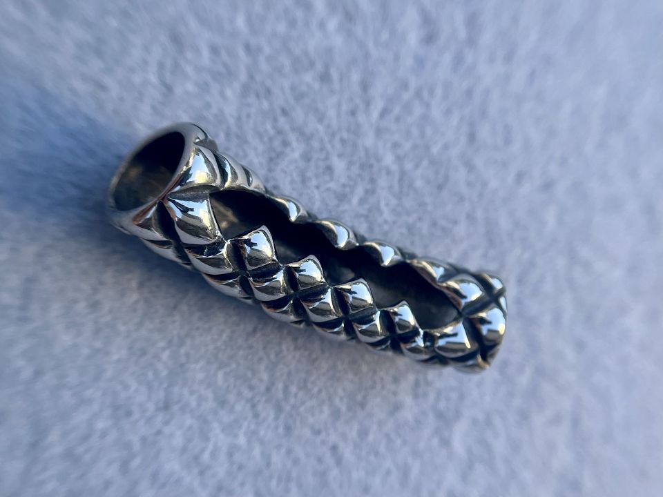 Бусина-протяжка з нержавіючої сталі для виготовлення біжутерії. Використовуються для шкіряних шнурів, ланцюгів, парокорду. Розмір: 12 * 47мм, отвір: 9мм. Колір-сталь. Ціна за 1шт.