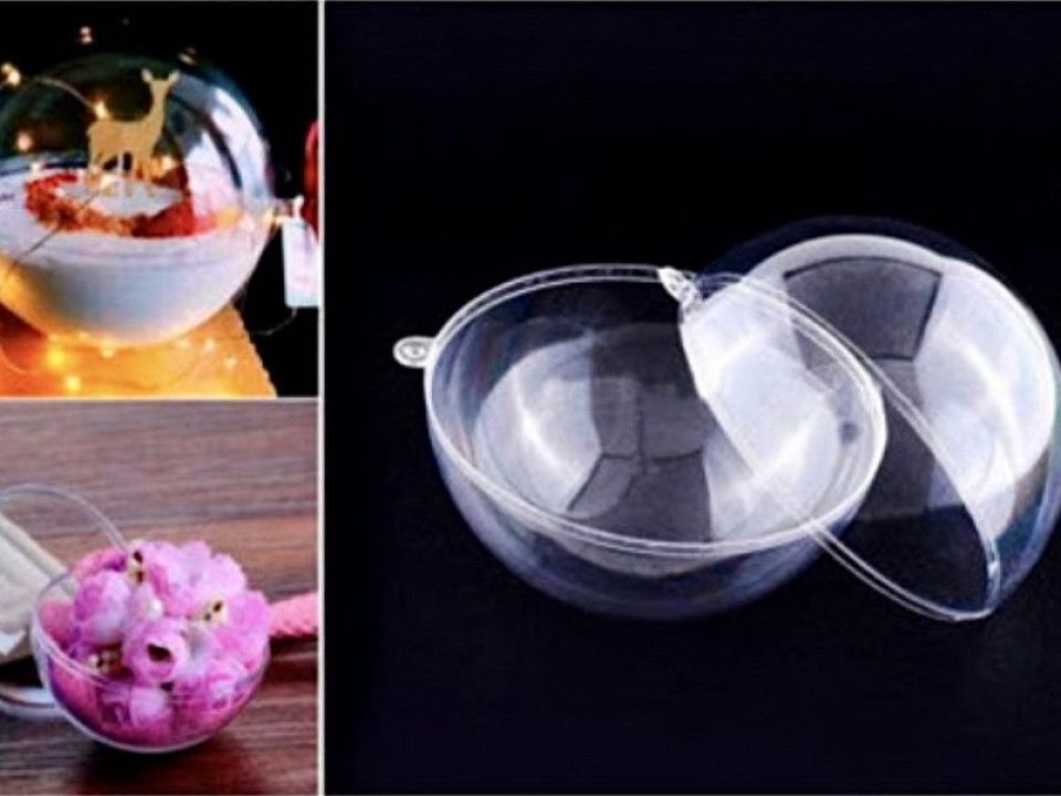 Роз'ємні пластикові кулі. Діаметр: 12см. Куля має гладку поверхню і складається з двох розбірних частин, з'єднавши їх отримуєте цілісну кулю. Має кільце для підвішування.