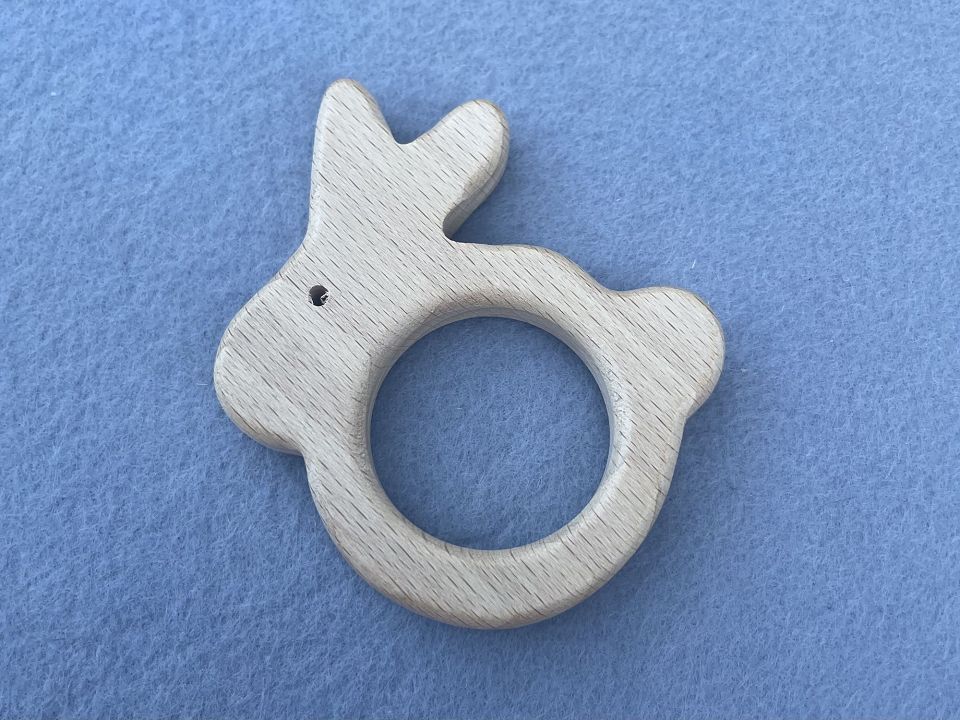 Гризунок дерев'яний "Кролик". Дерев'яний, фігурний гризунок для слінгбусу. Аксесуар виготовлений із натуральної деревини (бук), якісно оброблений, не покритий лаком. Такий гризунок повністю безпечний для малюка, він не залишить скалку. Розмір: 6 * 8см.