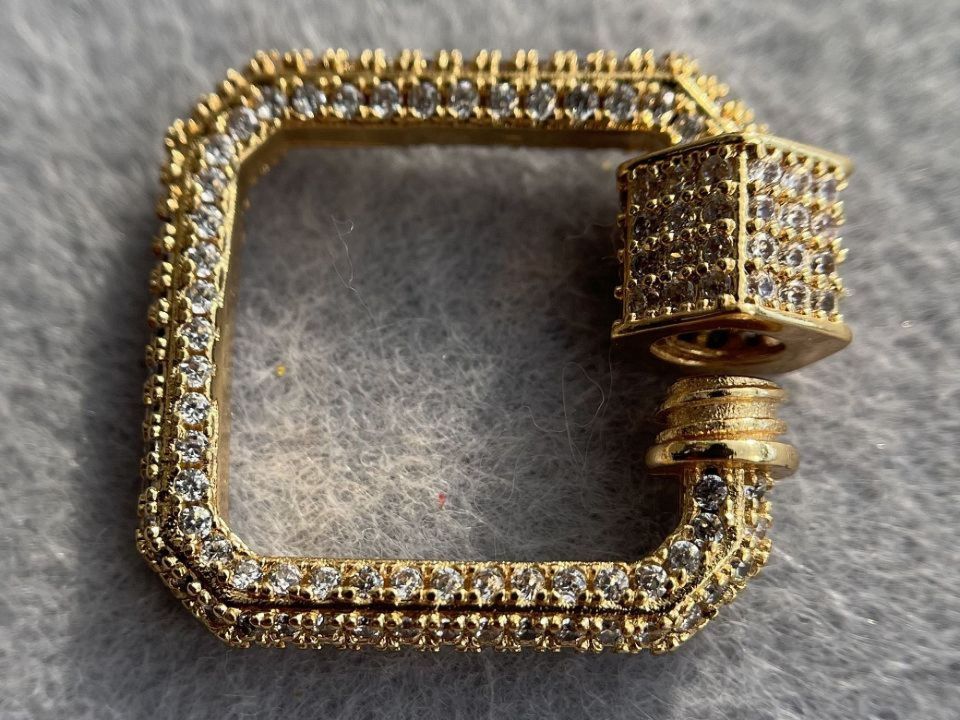Родований замочок для біжутерії "Квадрат", з інкрустацією фіанітами. Двосторонній замок.