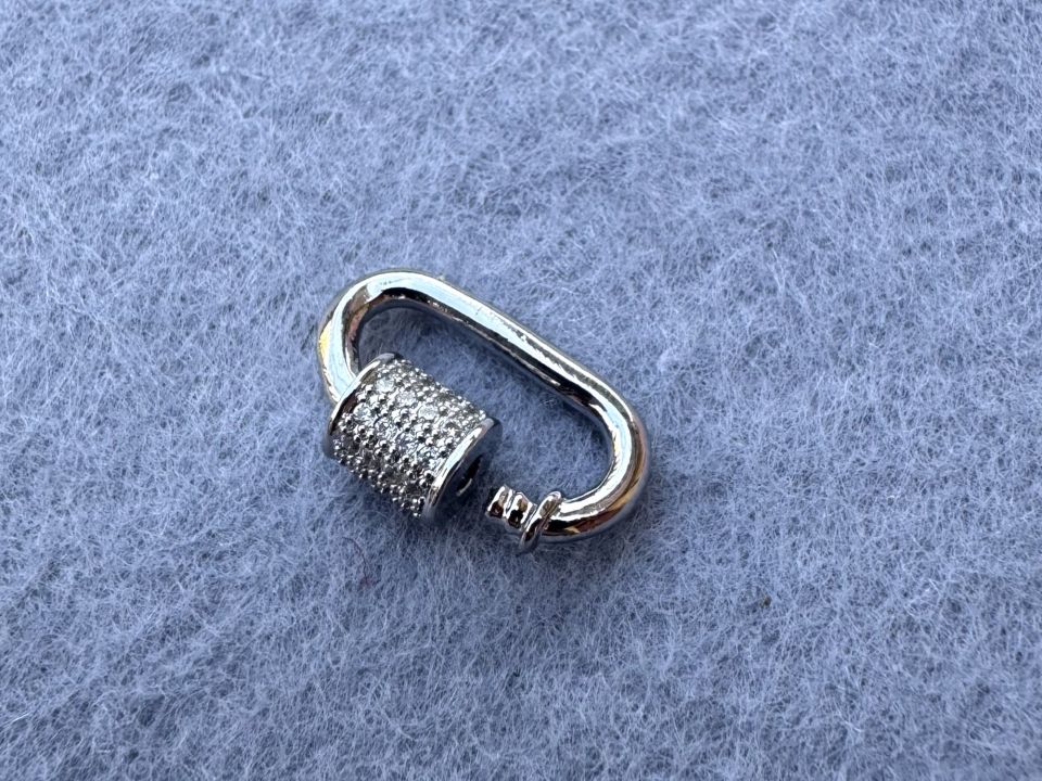 Родований замочок для біжутерії "Овал", з інкрустацією фіанітами. Розмір: 10*16 мм. Колір-сталь. Якісна фурнітура класу Люкс. Ціна вказана на одну штуку. Застібка, що закручується, - незамінна фурнітура для важких прикрас. Вона надійно фіксує масивне кольє з ланцюгів або намисто з натурального каміння. Застібка карабін ідеально підійде для створення прикрас на шию. Застібка з металу, що закручується, використовується не тільки для біжутерії, але і при виготовленні брелоків, сумок і як декоративний елемент.