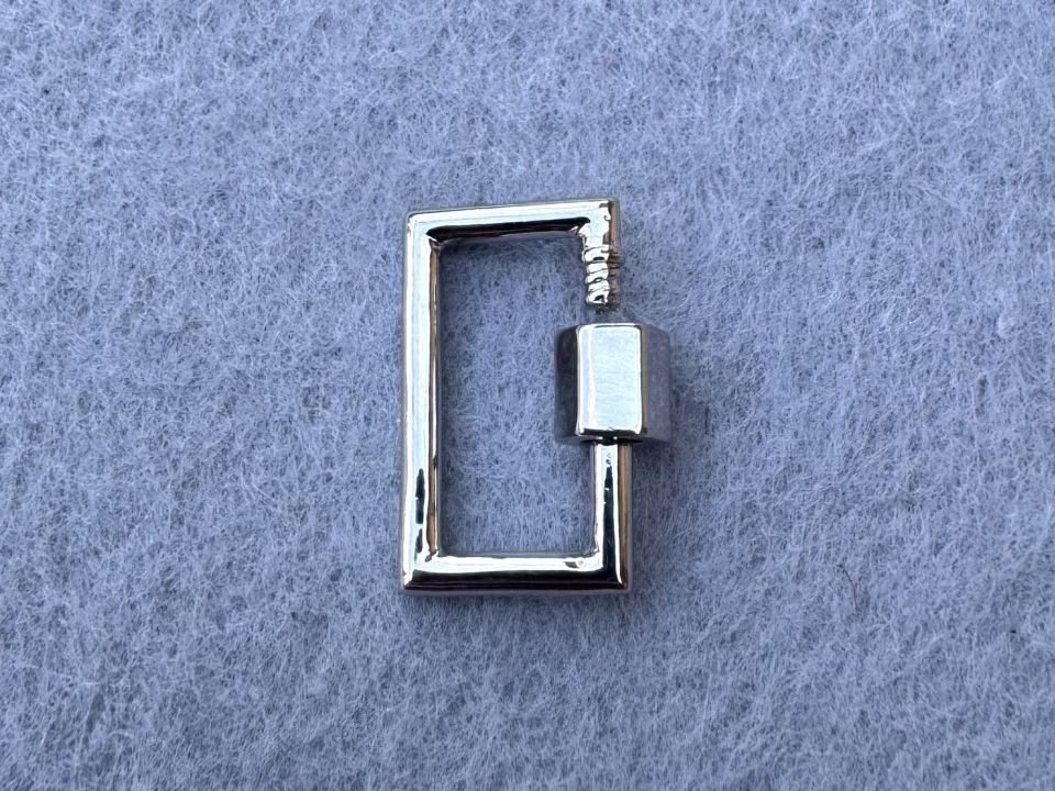 Родований замочок для біжутерії "Прямокутник". Розмір: 12*20 мм. Колір-сталь. Якісна фурнітура класу Люкс. Ціна вказана на одну штуку. Застібка, що закручується, - незамінна фурнітура для важких прикрас. Вона надійно фіксує масивне кольє з ланцюгів або намисто з натурального каміння. Застібка карабін ідеально підійде для створення прикрас на шию. Застібка з металу, що закручується, використовується не тільки для біжутерії, але і при виготовленні брелоків, сумок і як декоративний елемент.