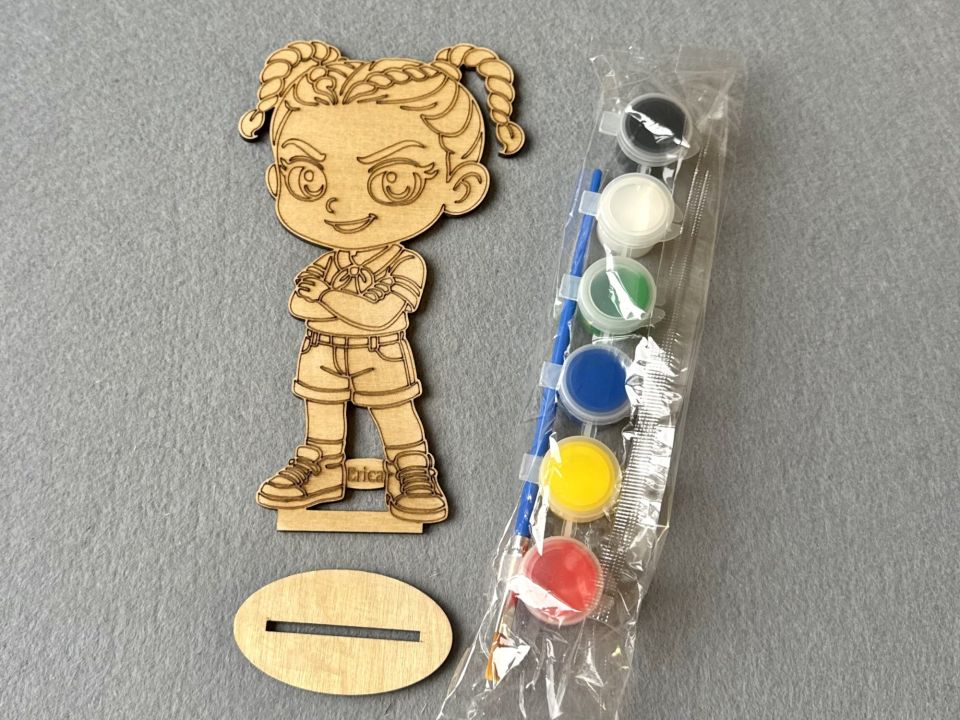 Розмальовки у формі улюблених героїв обов'язково зацікавлять дитину. У комплекті йде пензель та фарби. Розмальовуючи дерев'яне забарвлення, малюк отримає задоволення від творчого процесу та гарний сувенір, зроблений своїми руками. Розмальовка виконана з фанери на підставці. Розмір готового виробу (13 x 18 см). Ціна на 1 набір.
