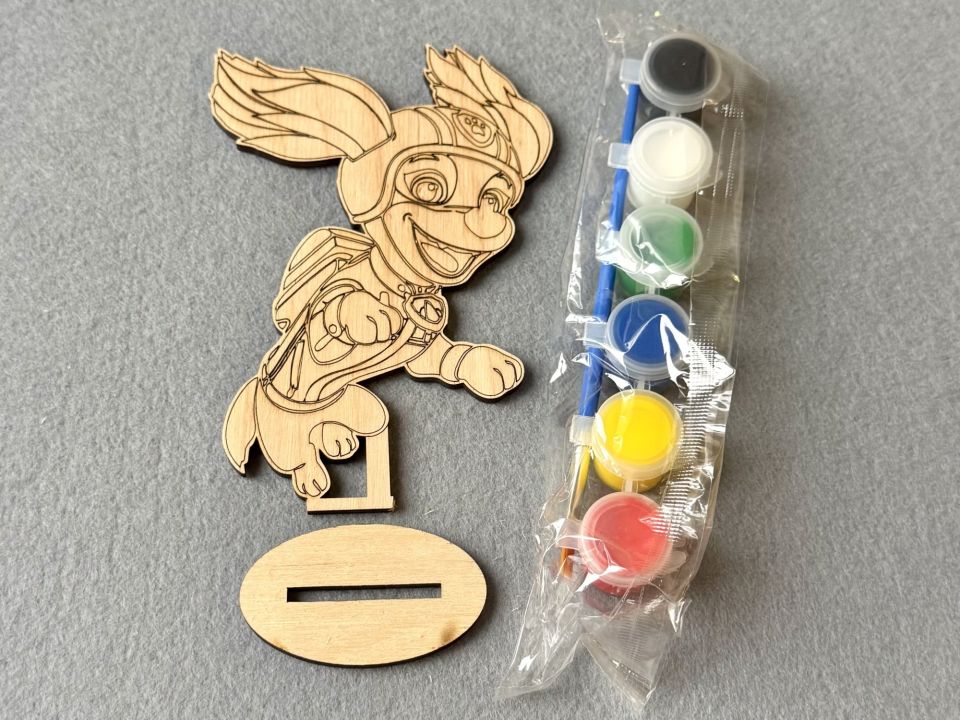Розмальовки у формі улюблених героїв обов'язково зацікавлять дитину. У комплекті йде пензель та фарби. Розмальовуючи дерев'яне забарвлення, малюк отримає задоволення від творчого процесу та гарний сувенір, зроблений своїми руками. Розмальовка виконана з фанери на підставці. Розмір готового виробу (13 x 18 см). Ціна на 1 набір.