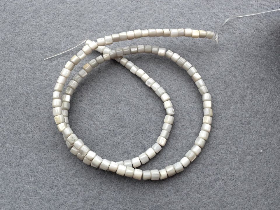Перламутр-натуральний, гладкий. Розмір намистини: 3*4 мм. Кількість намистин на нитці: 118 (+-2шт). Ціна за нитку (без замку). Довжина нитки: 38см