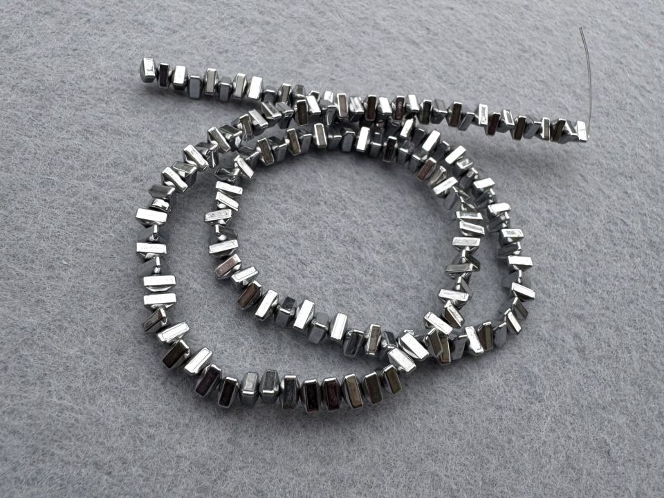Гематит гладкий. Розмір: 6*4 мм. Форма: трикутник. У нитці: 136+-3шт. Ціна за 1 нитку.
