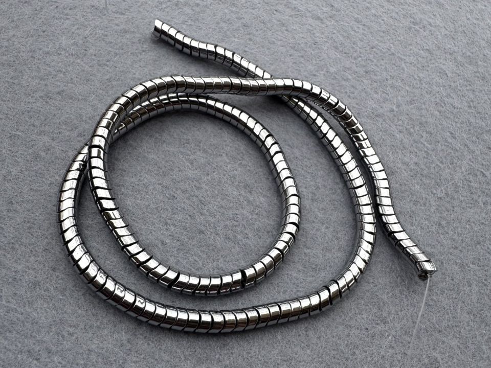 Гематит-натуральний, гладкий. Розмір намистини: 4*2 мм. Кількість намистин на нитці: 190 (+-2шт). Ціна за нитку.