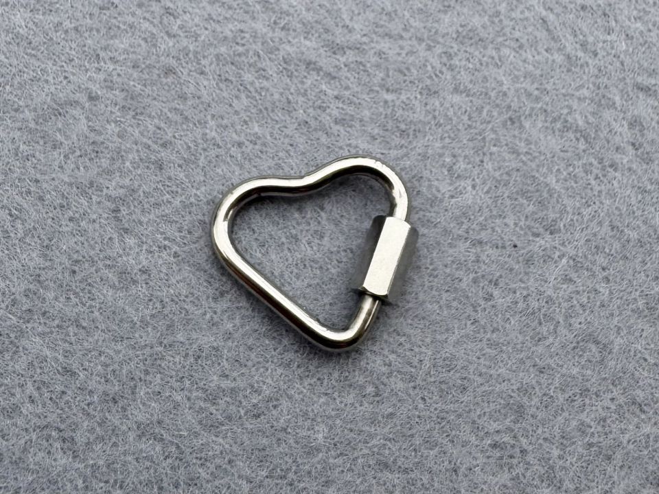 Замок для біжутерії "Серце". Розмір: 19*17 мм. Зроблений із нержавіючої сталі. Ціна вказана на одну штуку. Застібка, що закручується, - незамінна фурнітура для важких прикрас. Вона надійно фіксує масивне кольє з ланцюгів або намисто з натурального каміння. Застібка карабін ідеально підійде для створення прикрас на шию. Застібка з металу, що закручується, використовується не тільки для біжутерії, але і при виготовленні брелоків, сумок і як декоративний елемент.