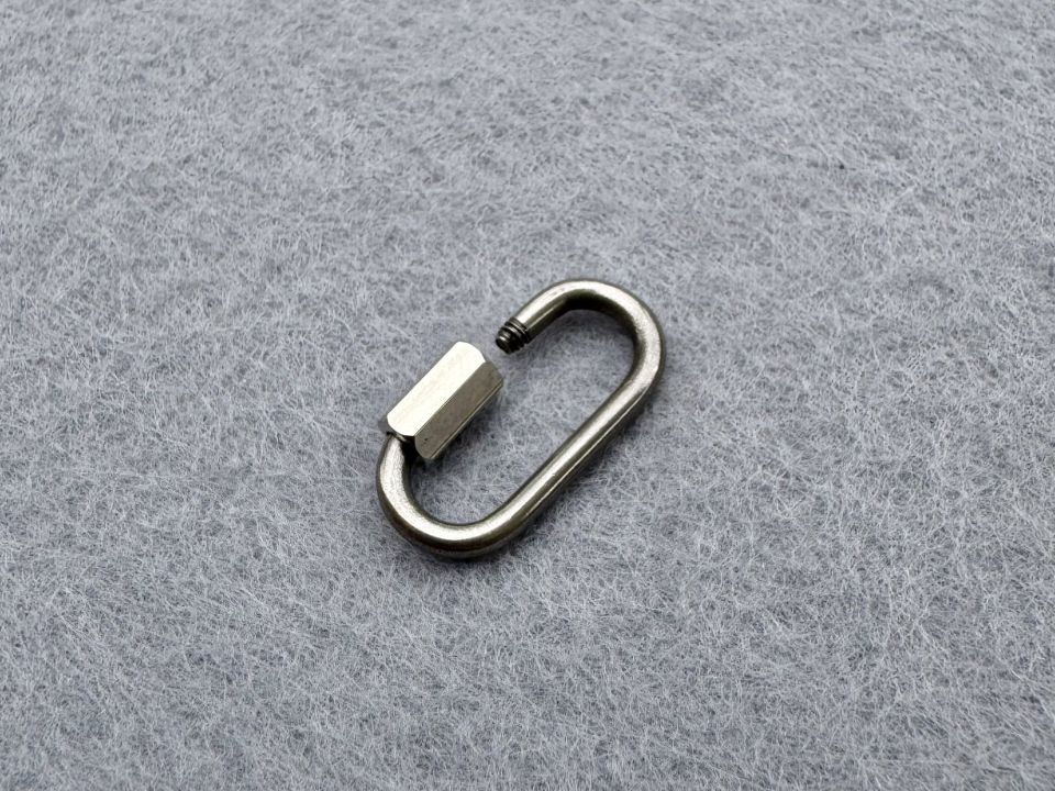 Замок для біжутерії "Овал". Розмір: 21*12 мм. Зроблений із нержавіючої сталі. Ціна вказана на одну штуку. Застібка, що закручується, - незамінна фурнітура для важких прикрас. Вона надійно фіксує масивне кольє з ланцюгів або намисто з натурального каміння. Застібка карабін ідеально підійде для створення прикрас на шию. Застібка з металу, що закручується, використовується не тільки для біжутерії, але і при виготовленні брелоків, сумок і як декоративний елемент.