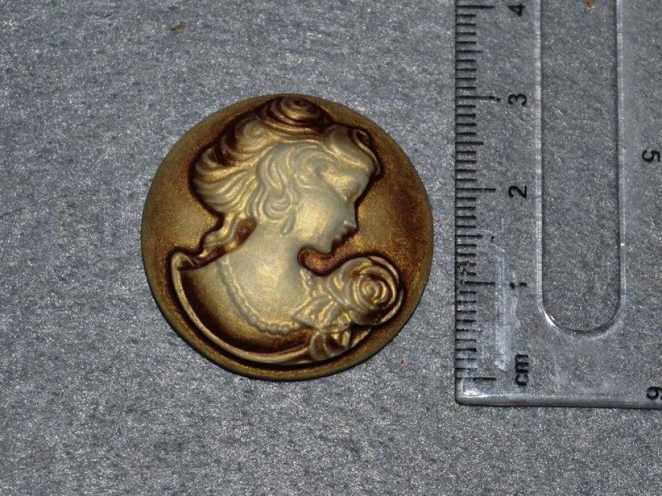Камея-кабошон пластиковий зображенням діви - 30мм. Форма кругла з плоским підставою.