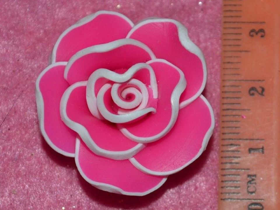 Намистини з полімерної глини. Форма: об'ємна троянда. Розмір намистини: 3 см, отвір: 1 * 1.5 мм. Ціна вказана за 1 шт. Квітку можна нанизати на основу для браслета або приклеїти на основу для кілець. Так як це намистини ручної роботи, то розмір може варіюватися + -1 мм