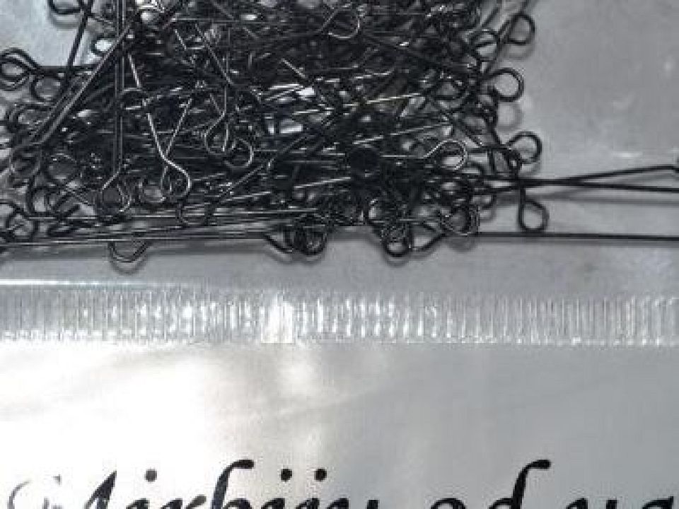 Піни-шпильки (шпильки), колір чорнене. Ціна за упаковку-50 грам. Розмір в фасування від 3 до 4 см. За допомогою шпильок з'єднують між собою намистини, роблять підвіски на браслети, кулони та сережки. Чим довше пін, тим більше по діаметру намистину, на нього можна нанизати, або використовувати відразу кілька намистин.