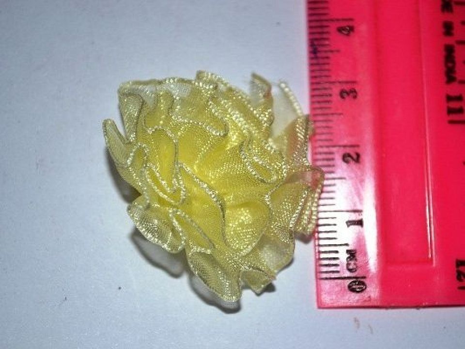 Квітка з органзи використовуються для декорування будь-якої вашої роботи. Діаметр квітки 28мм, висота 10-12мм колір лимонний упаковка 10шт.