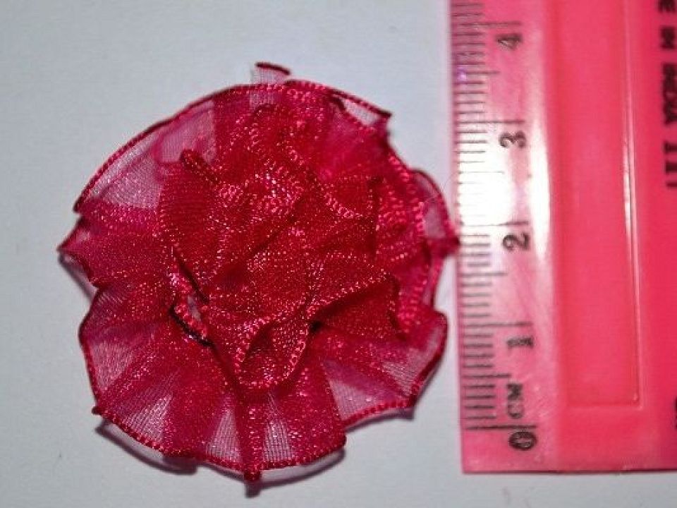Квітка з органзи використовуються для декорування будь-якої вашої роботи. Діаметр квітки 28мм, висота 10-12мм колір малиновий упаковка 10шт.