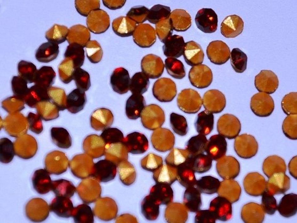 Ювелірні стрази з конусним дном виготовлені зі скла, SS 10 (2,7 - 2,8 мм). Ціна за упаковку - 144шт. Дно конусних страз має золотисте і шорстке покриття, завдяки чому стрази яскраво виблискують і переливаються. Стрази конусні застосовуються у виготовленні ювелірних виробів, елітної біжутерії, в декорі одягу, взуття, різних предметів інтер'єру. Їх вклеюють в готові отвори або вставляють в металеву оправу (ЦАПи).