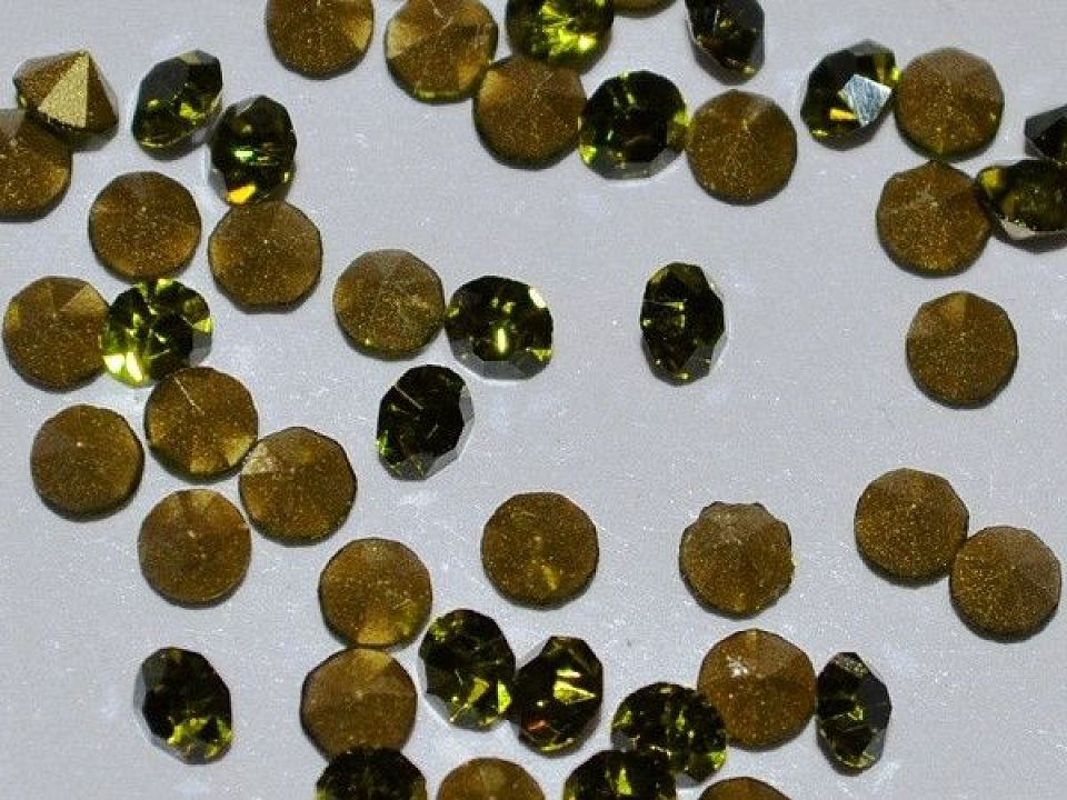 Ювелірні стрази з конусним дном виготовлені зі скла, SS 10 (2,7 - 2,8 мм). Ціна за упаковку - 144шт. Дно конусних страз має золотисте і шорстке покриття, завдяки чому стрази яскраво виблискують і переливаються. Стрази конусні застосовуються у виготовленні ювелірних виробів, елітної біжутерії, в декорі одягу, взуття, різних предметів інтер'єру. Їх вклеюють в готові отвори або вставляють в металеву оправу (ЦАПи).