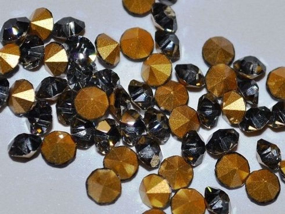 Ювелірні стрази з конусним дном виготовлені зі скла, SS 10 (2,7 - 2,8 мм). Ціна за упаковку - 144шт. Дно конусних страз має золотисте і шорстке покриття, завдяки чому стрази яскраво виблискують і переливаються. Стрази конусні застосовуються у виготовленні ювелірних виробів, елітної біжутерії, в декорі одягу, взуття, різних предметів інтер'єру. Їх вклеюють в готові отвори або вставляють в металеву оправу (ЦАПи).