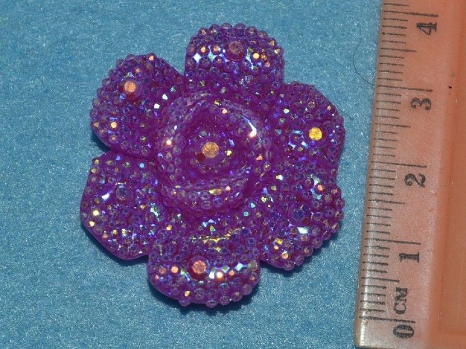 Пластиковый кабошон виде розы, усыпан камнями имеет плоское (ровное) основание. Размер розы 3см, основание 2см. Используется для украшений бантов, заколок и других различных поделок