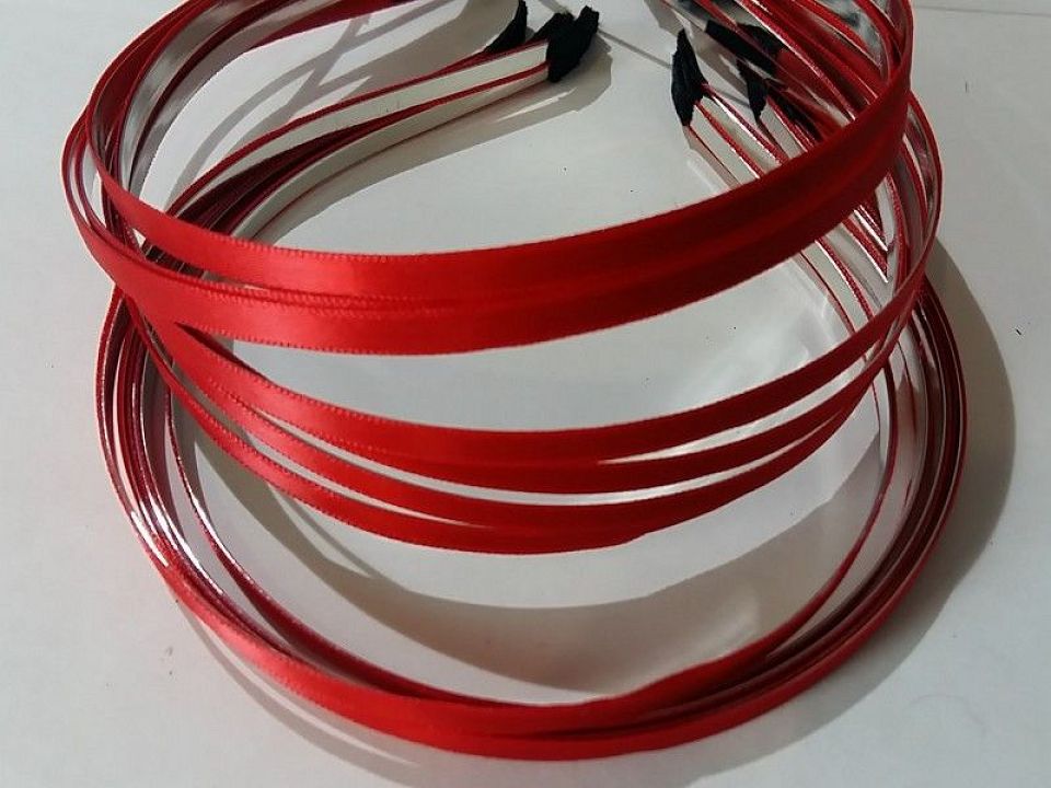 Обруч металлический с наклееной атласной лентой,ширина-5мм. Цена за 1шт. Заготовка для обруча используется для создания бижутерии,размер универсальный-подходит как для детей так и для взрослых.