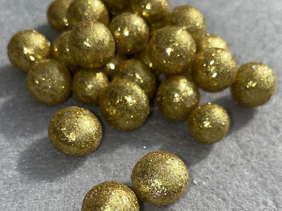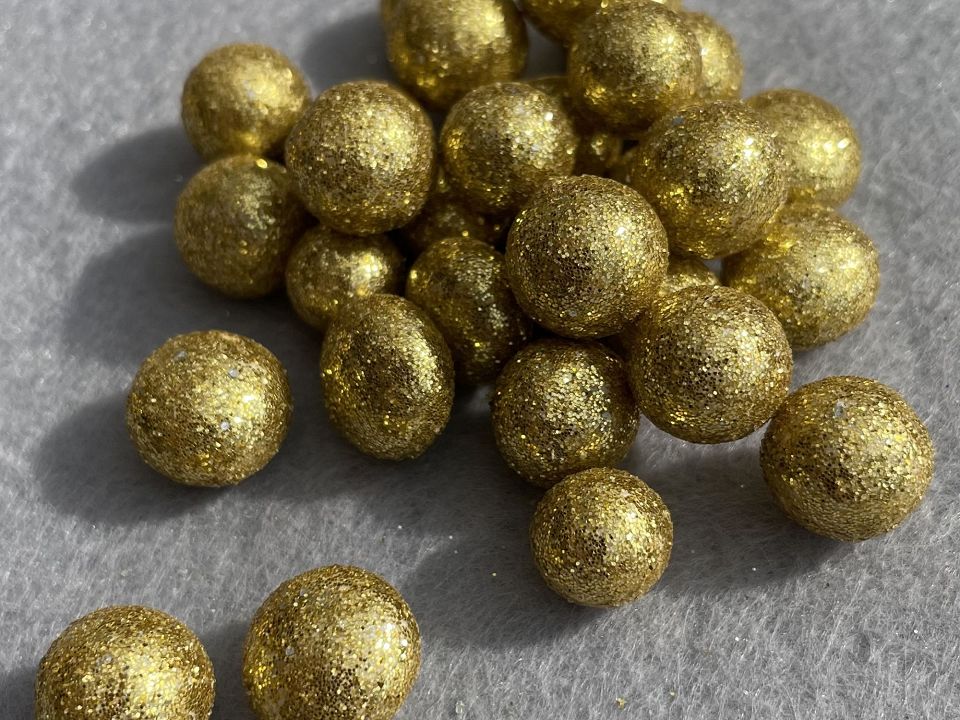 Шарики пенопластовые с глиттером золотые. Упаковка-230 шт+-10 шт. Размер от 8-12мм.