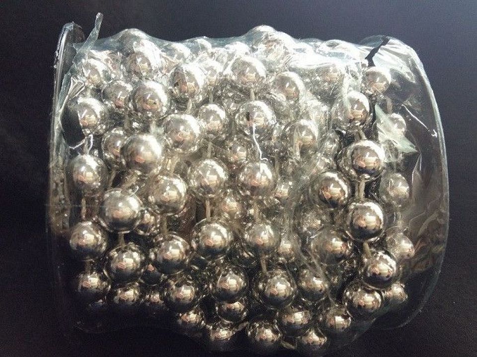 Жемчуг фиксированный на нитке, Новогодний декор. цвет серебряный 10мм катушка 5 ярдов