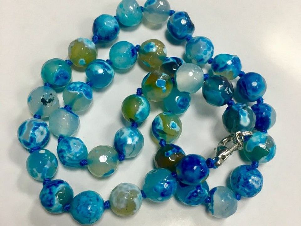 Агат гранённый бирюзово-прозрачный.Диаметр~10мм;~38 бусинок с замочком!