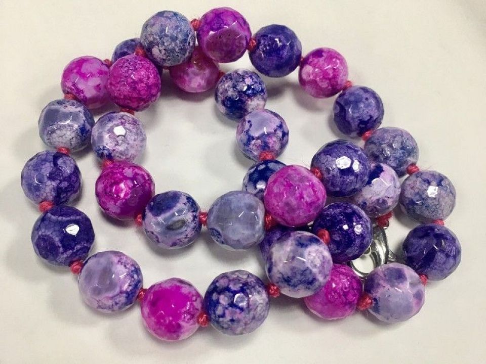 Агат гранённый сине-малиновый;диаметр-12 мм~33 бусины с замочком!
