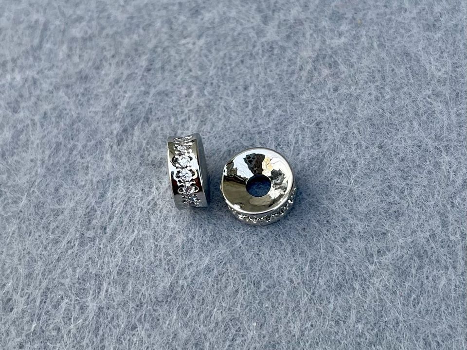 Бусины-рондели инкрустированы Кубическим цирконием (также называются бусинами с фианитами).