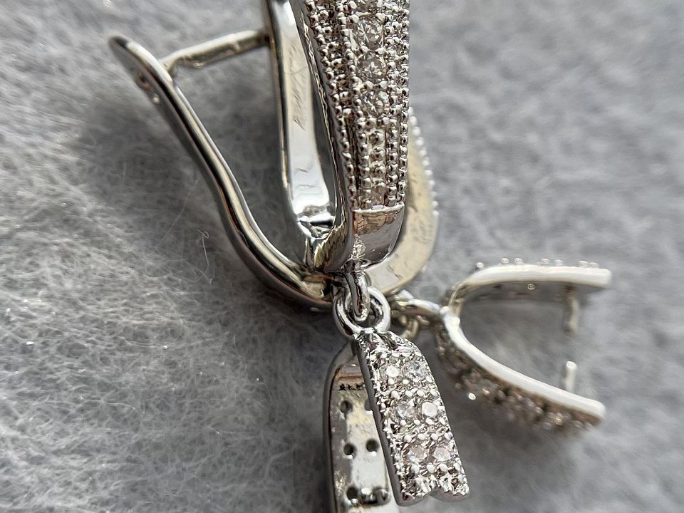 с зажимом для подвесок Сваровски. Инкрустированы фианитами.