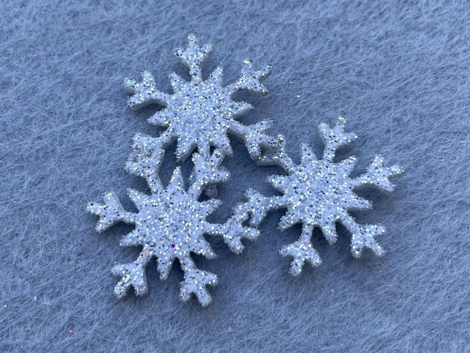Вырубка из глитерного фома- снежинка. Размер: ~ 2,2см. Подойдет для различных поделок и декорирования. Легко можно пришить и приклеить. Цена за упаковку-60шт.