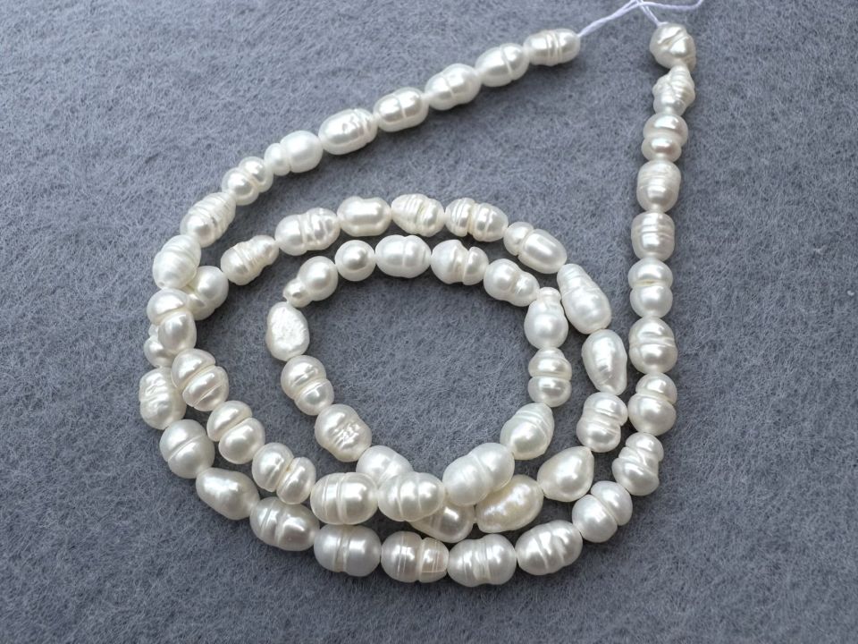 Жемчуг речной. Размер бусин : 4 * 6 мм. Количество на нитке ~60 бусин (+-2шт) Нитка 34 см без замочка.