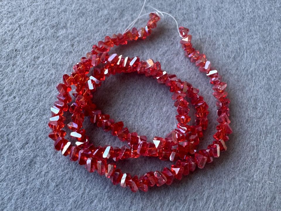Хрустальные бусины, гранёные. Размер : 5 * 4 мм. Форма: треугольник . В нитке: 138+-3шт. Цена за 1 нитку.