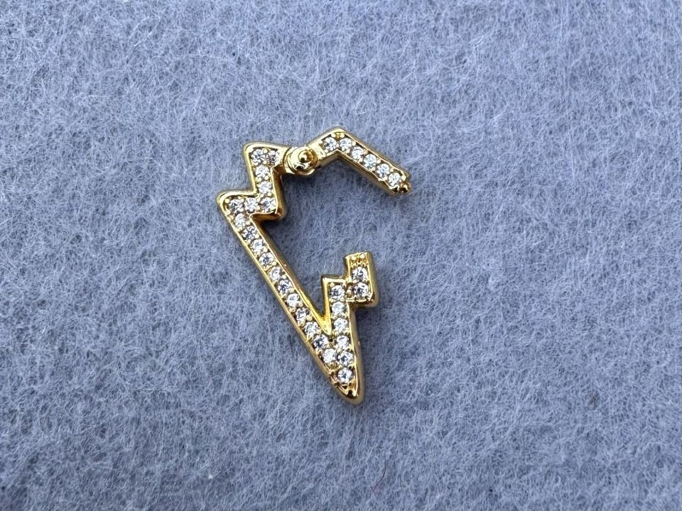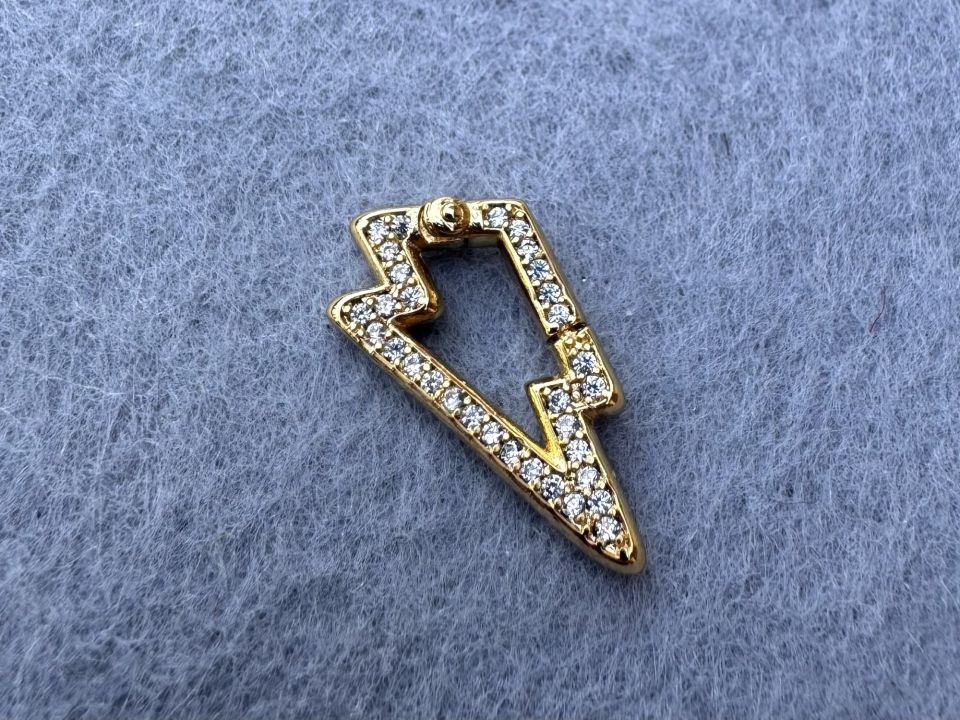 Родированный замочек для бижутерии " Молния ", с инкрустацией фианитами. Замок односторонний. Размер: 10 * 22 мм. Качественная фурнитура класса "Люкс". Цена указана за одну штуку.