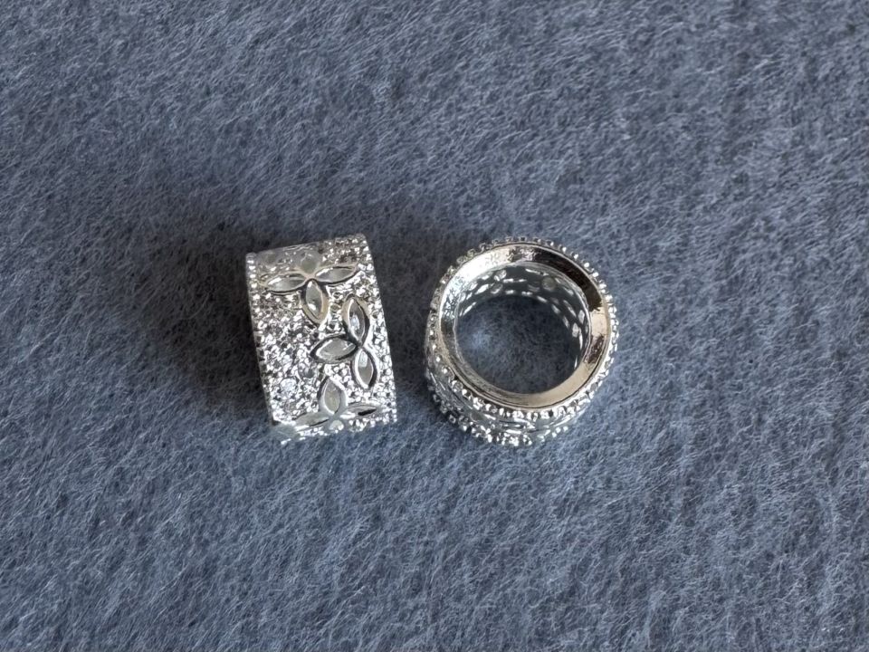 Бусина инкрустирована Кубическим цирконием (также называются бусинами с фианитами). Покрытие родий. Цвет - серебро. Размер: 9 * 6 мм, отверстие - 7мм. Цена за 1 шт