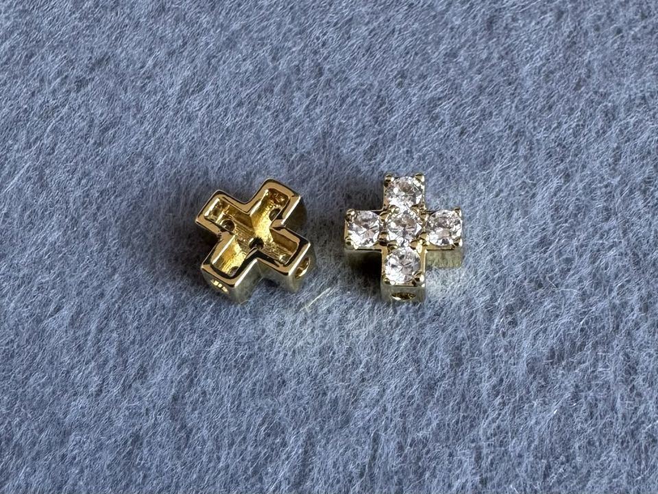 Бусина инкрустирована Кубическим цирконием (также называются бусинами с фианитами). Покрытие родий. Цвет - золото. Размер: 8 * 8 мм, отверстие - 1 мм. Цена за 1 шт