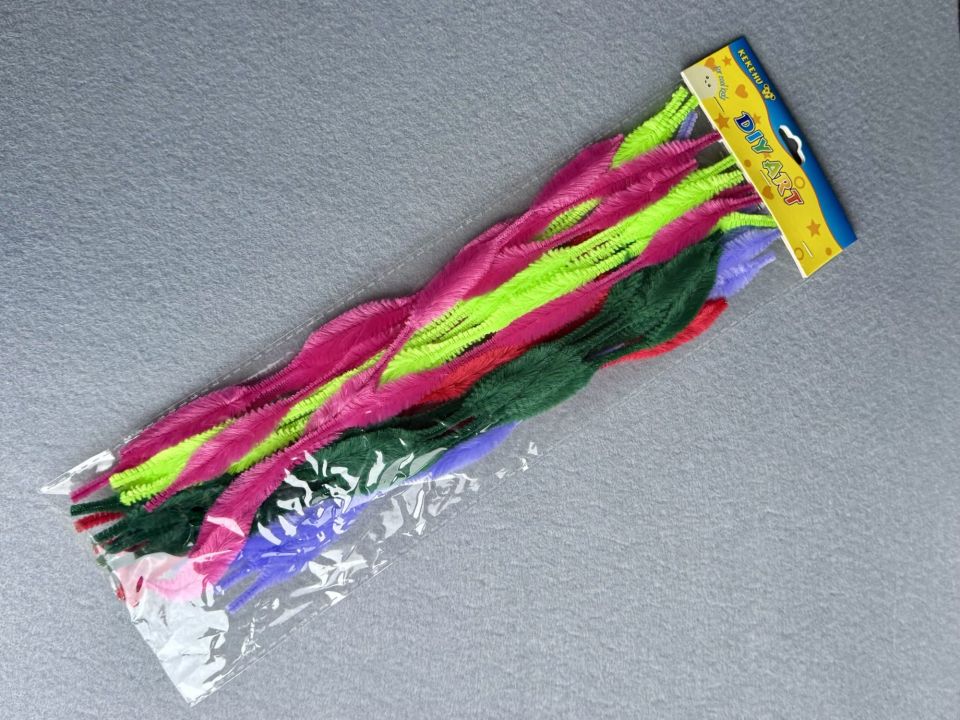 Синельная проволока – это тоненький металлический стержень, покрытый ворсистым материалом. Легко изгибается и принимает подходящую форму. Используется для формовки каркасов игрушек, для декорирования и изготовления различных изделий и фигурок.
