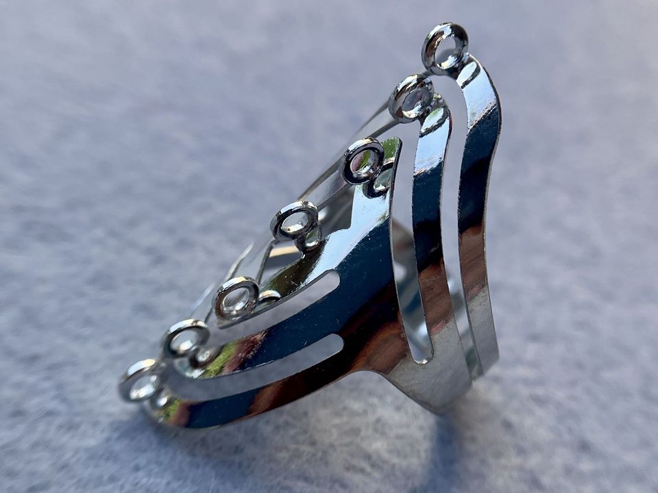Основа для кольца из металлического сплава, с 7 петельками. Диаметр кольца :17мм и расширяется на пару размеров. Размер кольца:20*34мм. Цвет:сталь, цена за 1шт.